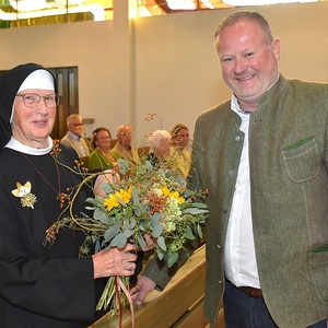 Der Jubliäumsgottesdienst wurde vom Rainbacher Kirchenchor feierlich musikalisch umrahmt. Im Namen der kfb steckte Gerlinde Kohlberger Sr. Herma ein Jubliläumssträußerl an. Pfarrgemeinde-